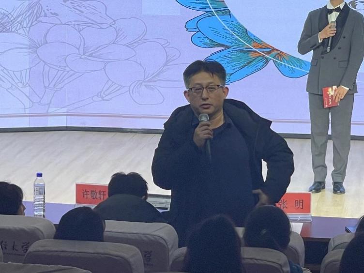 在公布名单之前,张明老师受邀对本次比赛进行了简要的点评。张明老师首先对各位选手的精彩表现和丰富多彩的演讲内容予以积极的肯定。张明老师还提到,得益于疫情的有效控制,我们才能再一次在这里相聚,再一次点亮这里的灯光,这是非常难得的。最后,张明老师也对同学们未来的发展表示了殷切的期望。