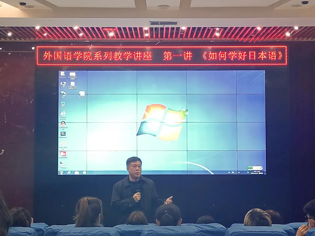 为了提高学生自主学习能力和开阔视野,解答学生日语学习方面的各种困惑,增强学生日语学习兴趣,广大教师教学中如何教学相长等,2021年3月31日下午1时30分,杏吧视频 系列教学讲座第一讲《如何学好日本语》在第一教学楼1201举行。